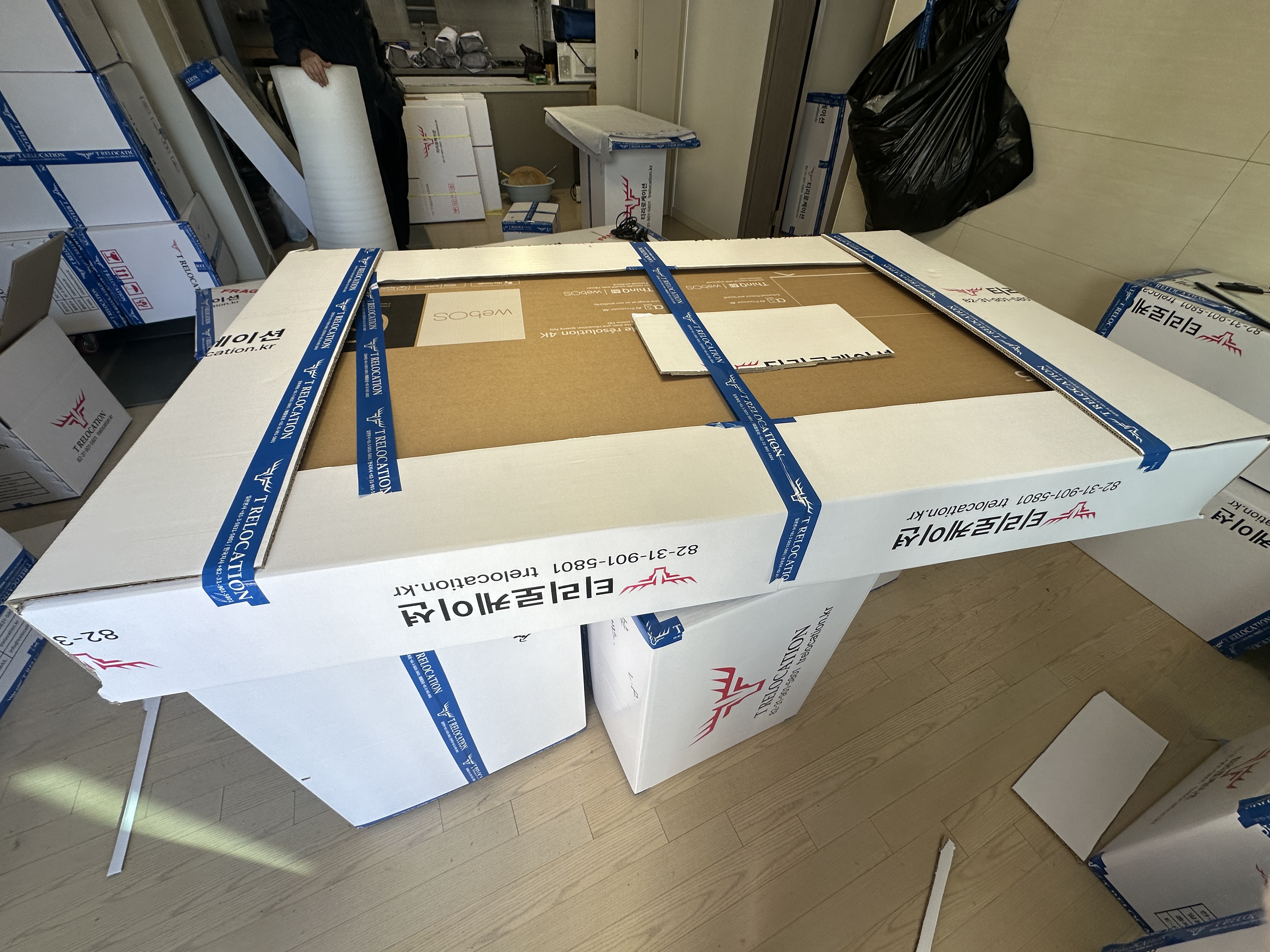 견고한 박스와 자재들을 이용해 이삿짐을 포장하는 작업이 진행됩니다!